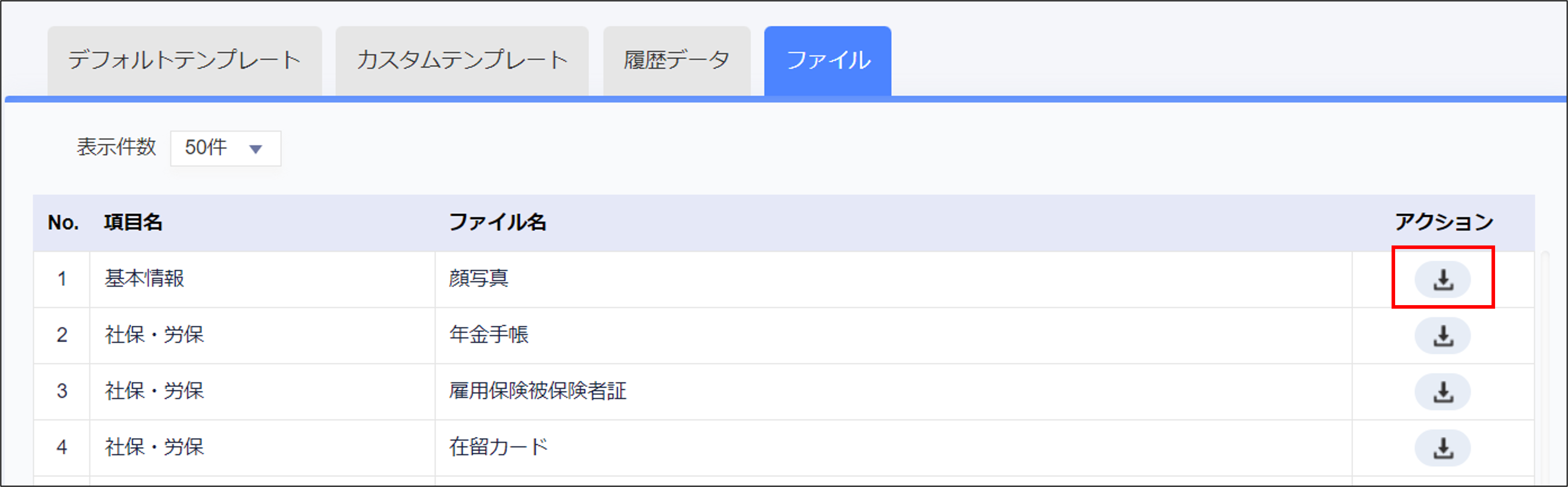 - カスタムされた権限を付与されている場合などで、従業員管理に閲覧できない項目にある添付ファイルは出力できません。